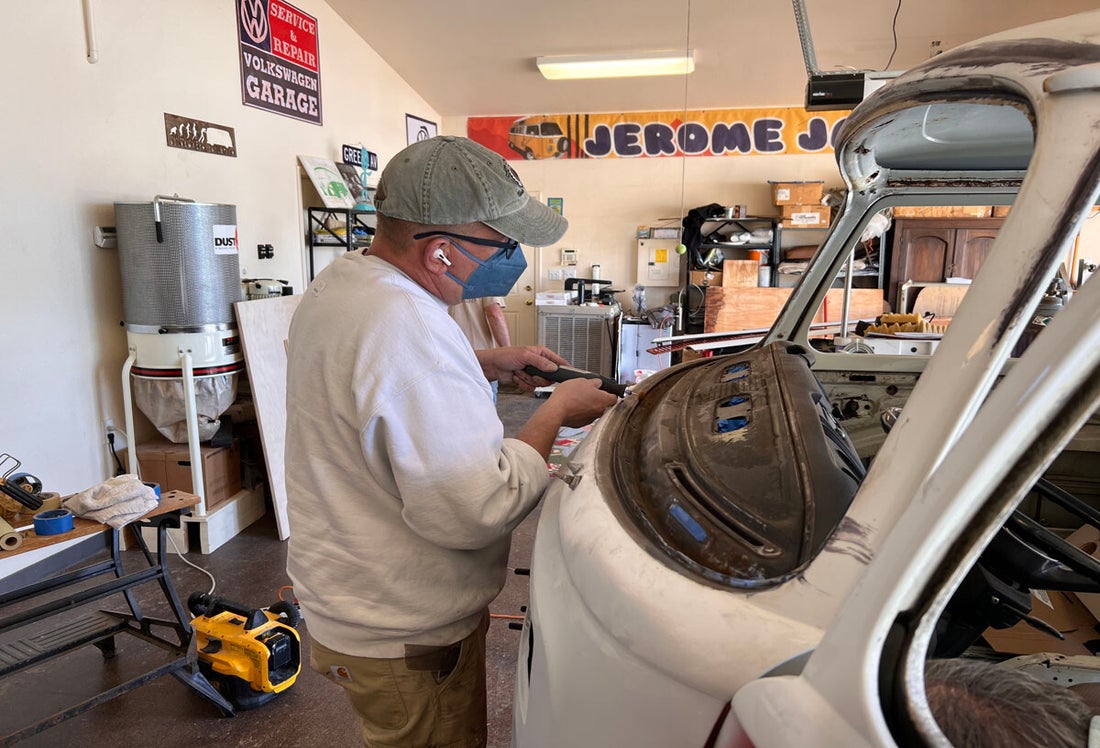 - Body - Remove spare tire, highlight dings, remove loose bondo, and grind rust.
